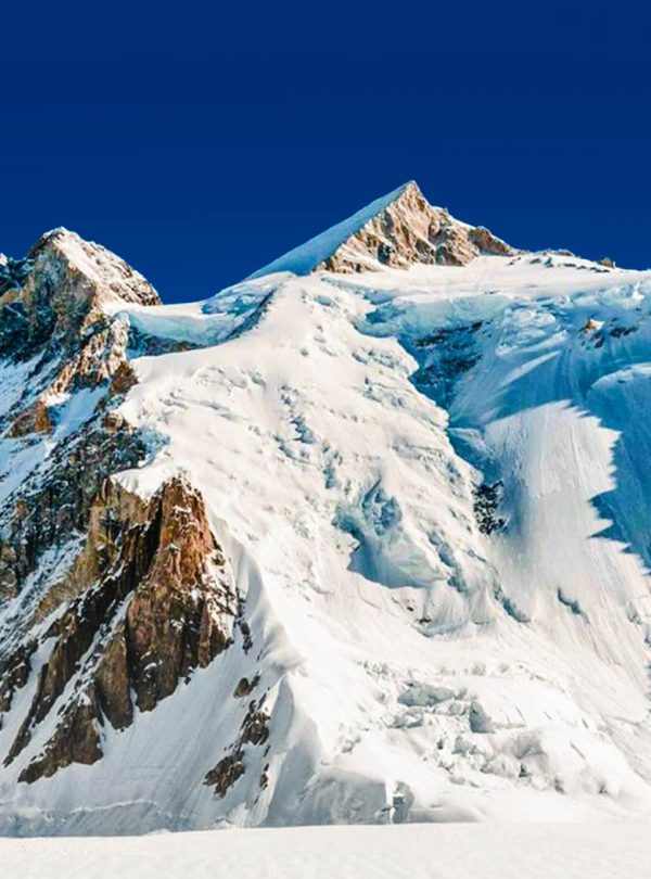 Hidden Peak 8,080 m as translated by the natives means “Shining Wall”. Among the six Gasherburm Peaks in the Karakoram range Gasherbrum I is the highest. The Americans were the first to reach its the Autumn of 1958. It was first climbed by A. Kaufman and P. Schoening in 1958. Although the French had made an attempt as early as 1956, Hidden Peak was also the first eight thousand meter peak to be climbed in Alpine style. These days there are more than six different routes on Gasherbrun I with as many variations providing the able mountaineer with opportunities galore. The trek to the Base Camp starts at Skardu town through Shigar valley across the Baltoro glacier.