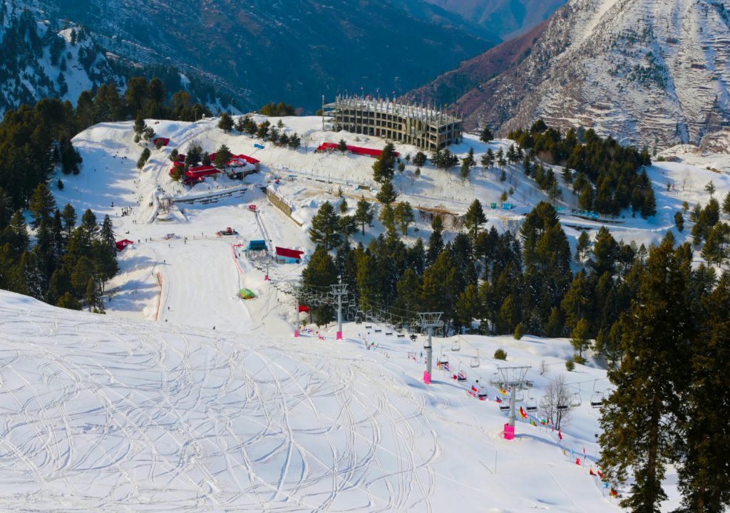Malam Jabba ski resort is situated in the Hindukush Range of the Swat Valley in Khyber Pakhtunkhwa Province at a top elevation of 2,804 m (9,199 ft). The resort is located in Malam Jabba village, 40 km east of Saidu Sharif and 314 km northwest of Islamabad. It is the largest and oldest ski resort in Pakistan.
