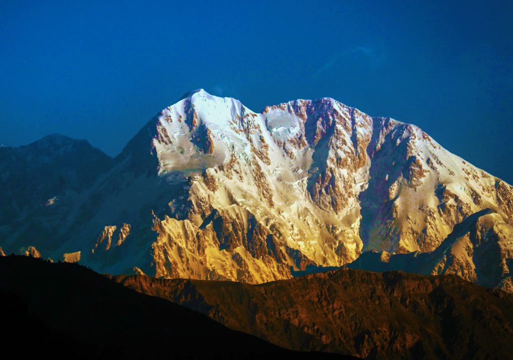Tirich Mir 7,708 m like Rakaposhi and Nanga Parbat to the east, is known for being the home of ‘Peris’ called “fairies” in English. The Tirich valley parallels the Turikho Valley and is separated from it by a 15 mile-long flat-topped ridge which averages about 12,500 feet in elevation.
